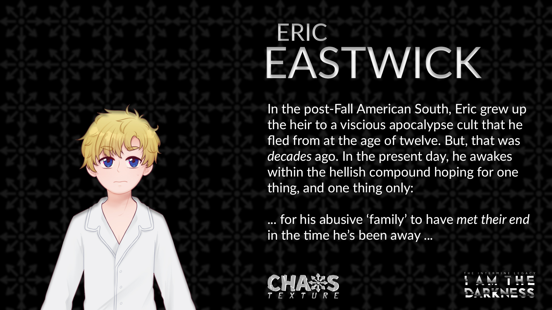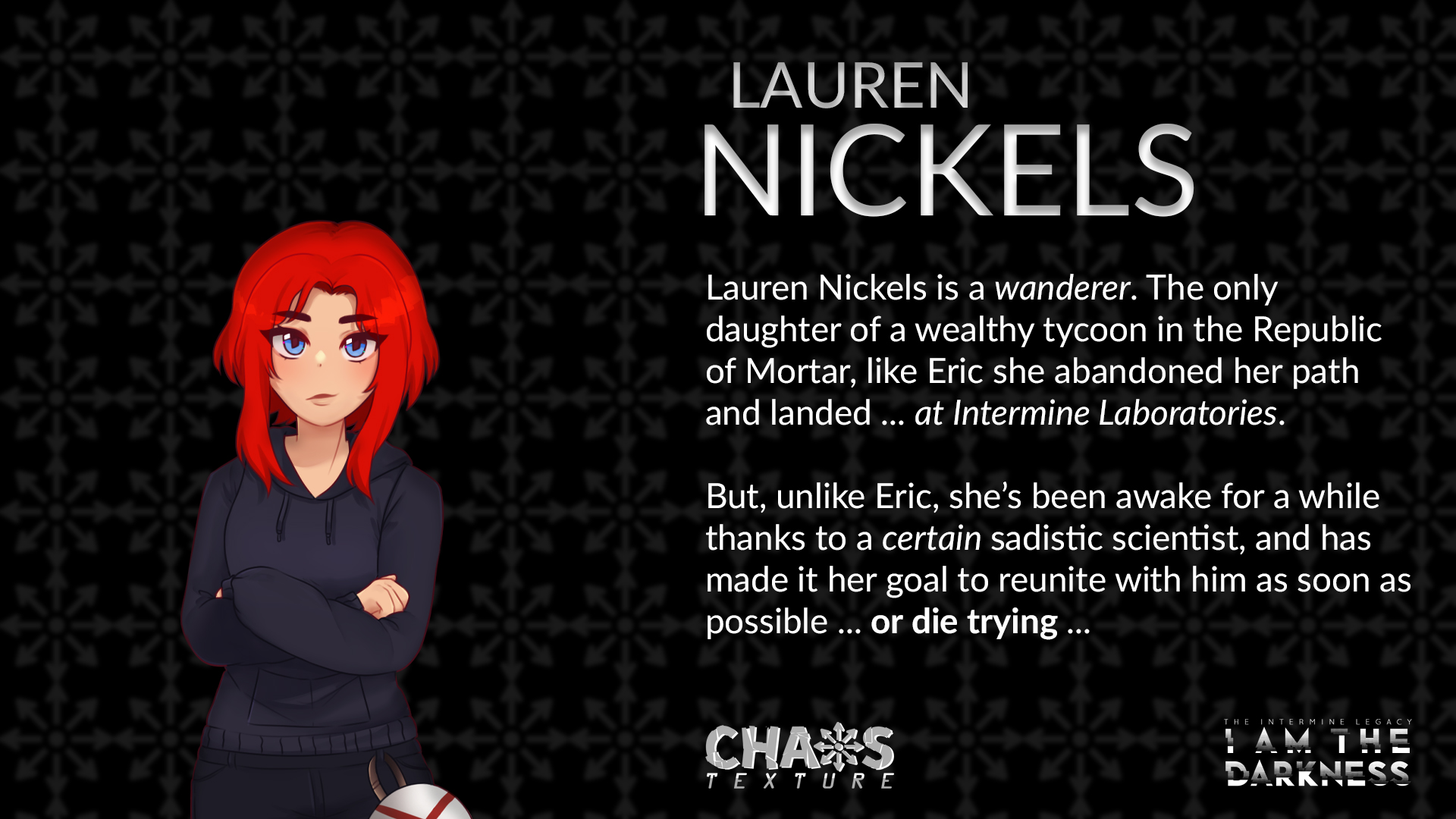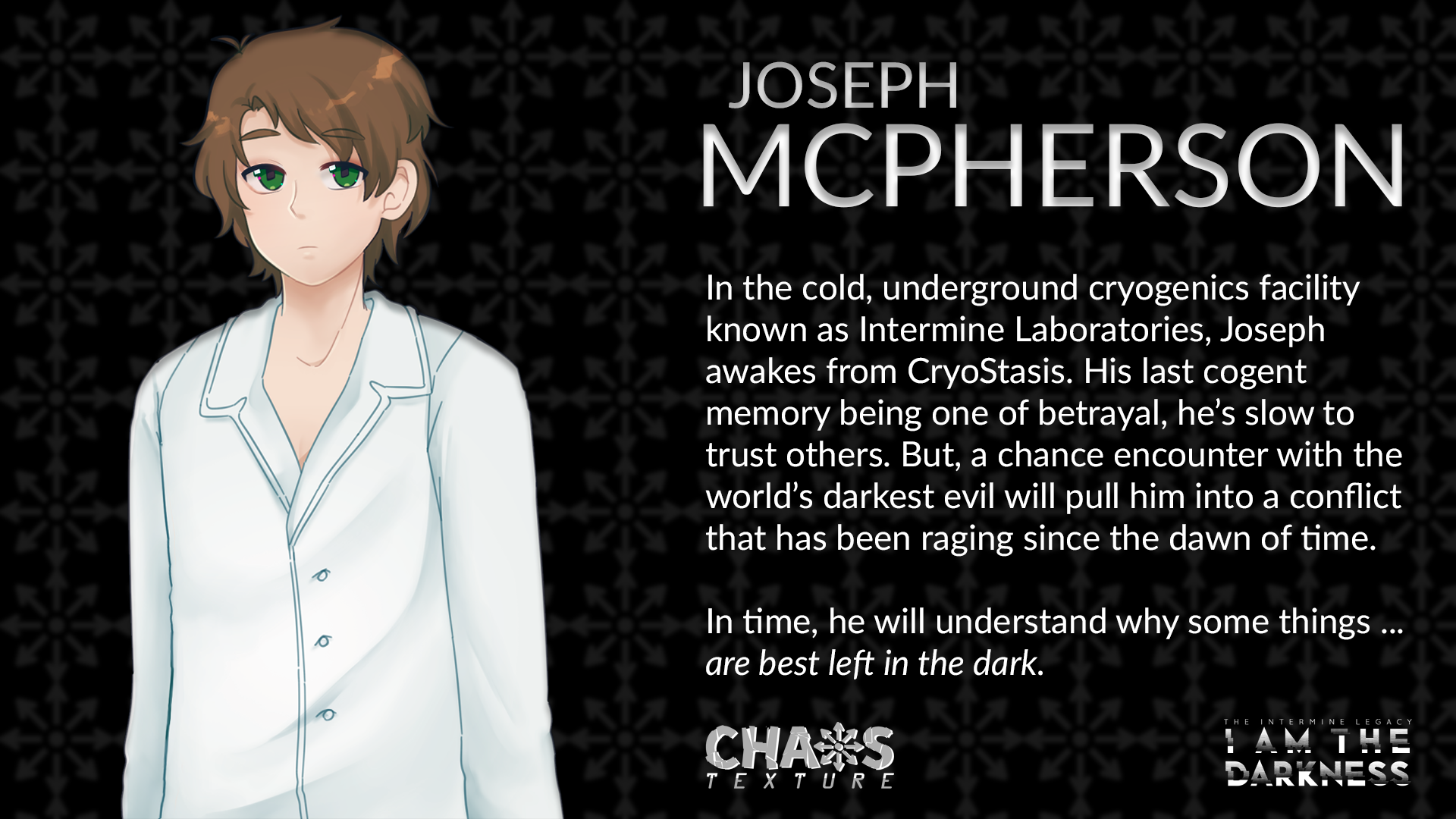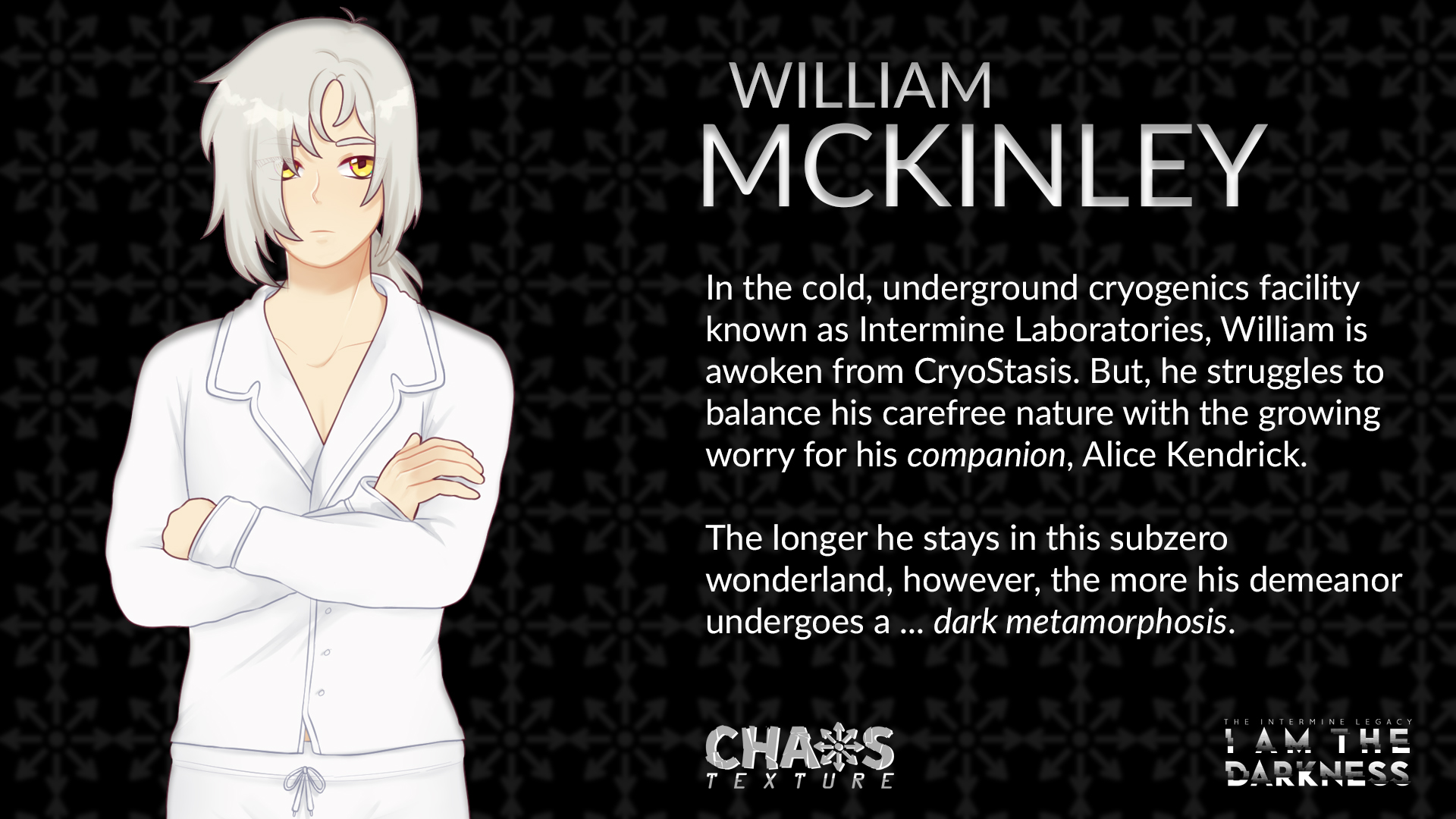 Deep underground, nestled in the remains of a post-apocalyptic American South, rests a cryogenic facility called Intermine Laboratories. In this minuscule piece of frost-stricken hell rests a collective of eclectic individuals who are inexplicably awoken from their restless dreams long before their assigned time.