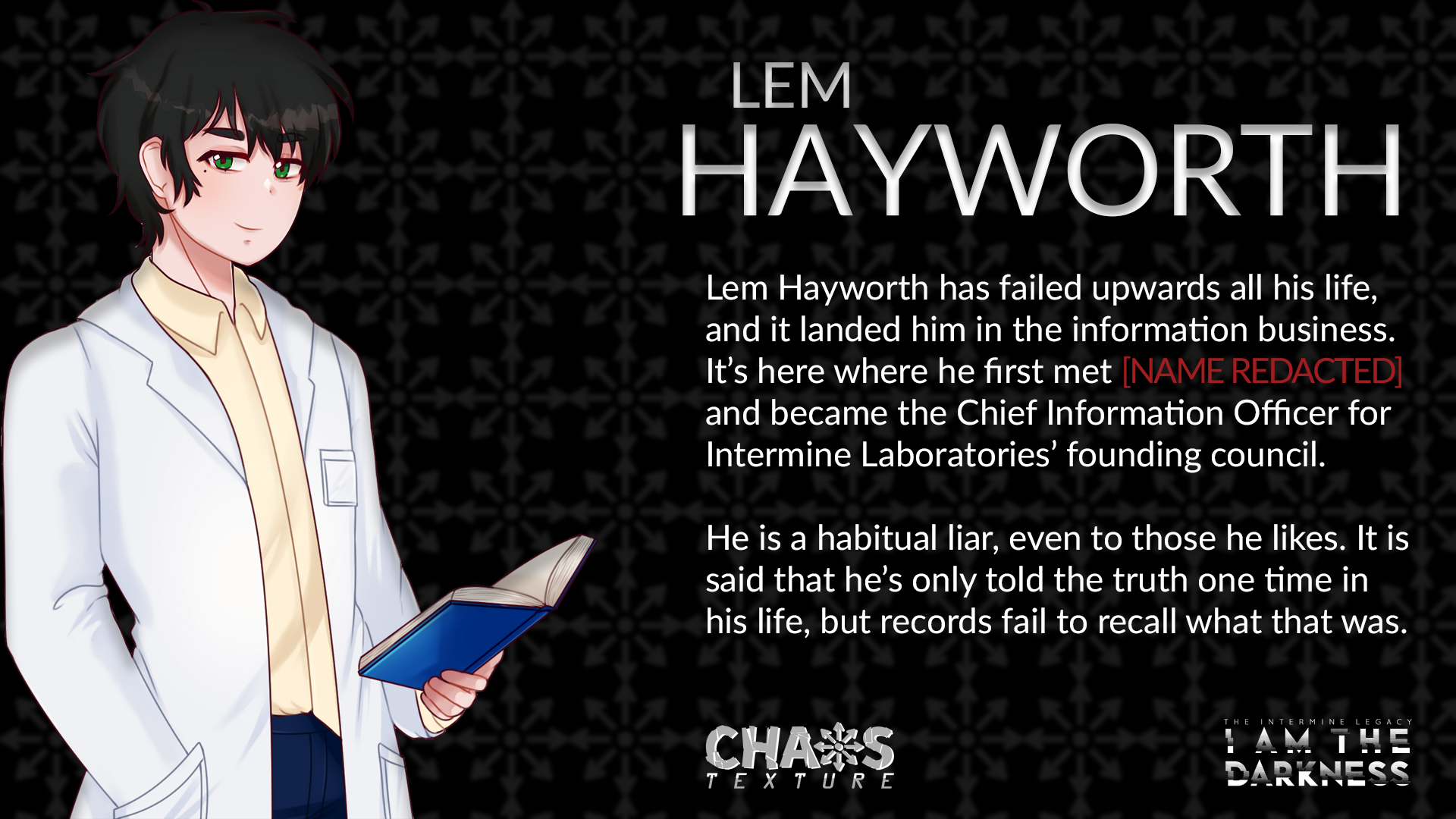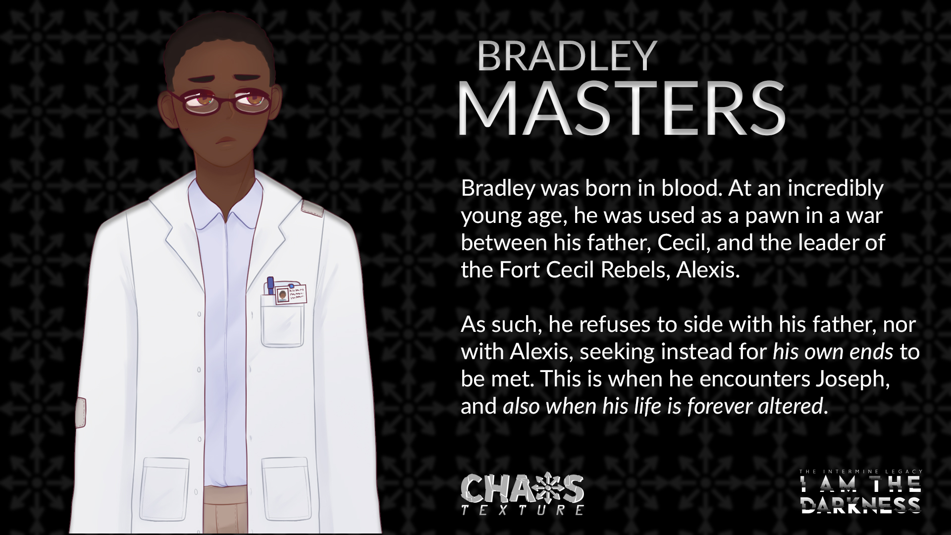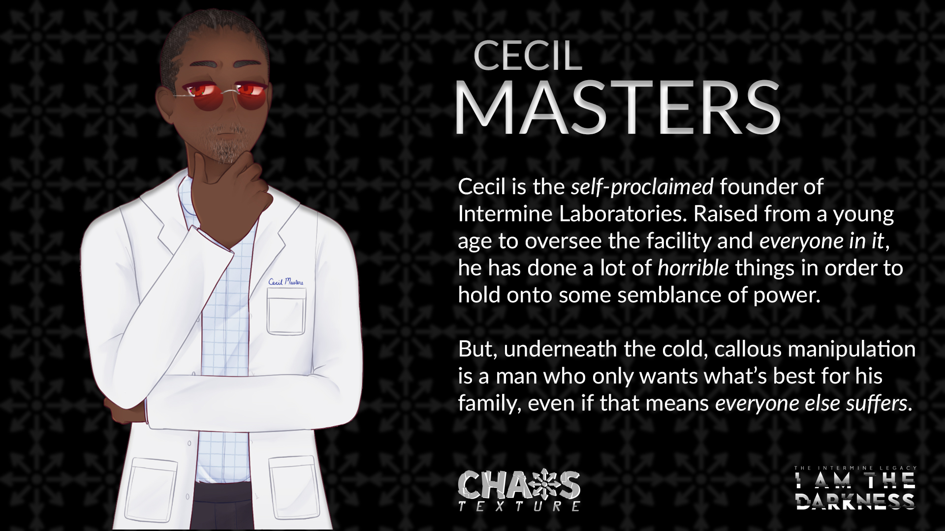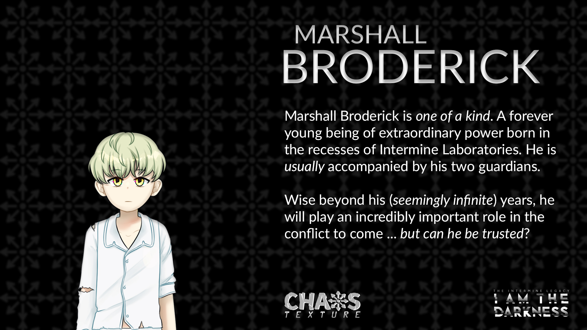 Deep underground, nestled in the remains of a post-apocalyptic American South, rests a cryogenic facility called Intermine Laboratories. In this minuscule piece of frost-stricken hell rests a collective of eclectic individuals who are inexplicably awoken from their restless dreams long before their assigned time.